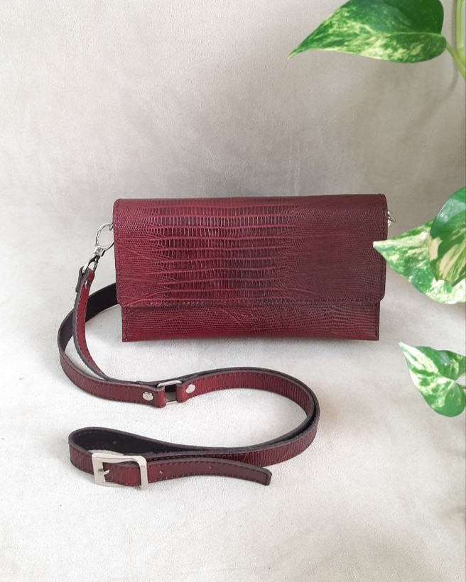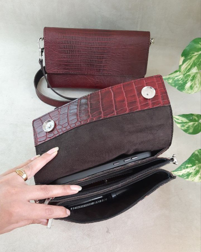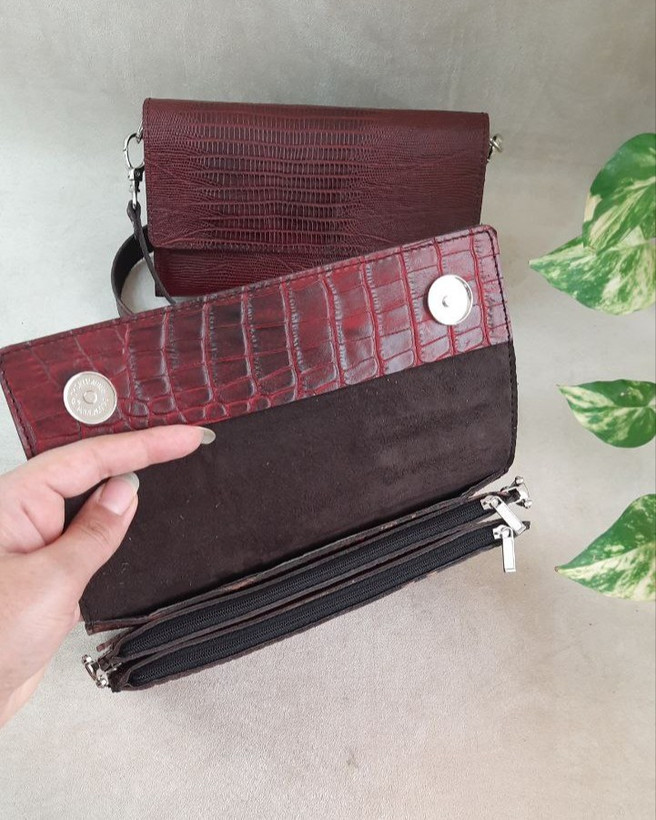 این کیف با چرم گاوی طرح لیزارد و رنگ شرابی خاص ، جلوهای خاص و لوکس به استایل شما میدهد✨